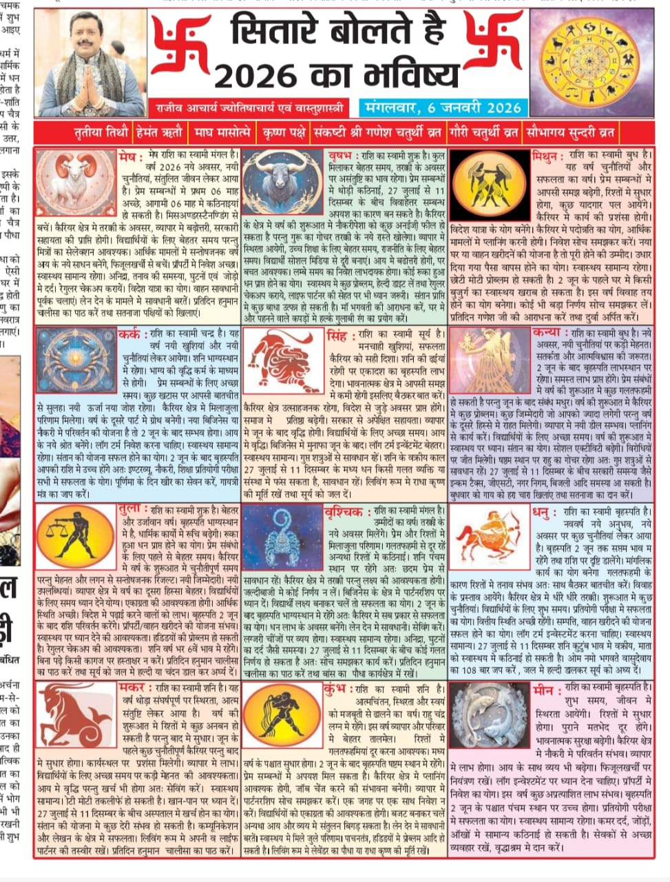 आज का राशिफल 6 जनवरी 2026 | सितारे बोलते हैं 2026 का राशिफल – भविष्यफल सभी 12 राशियों का l Rajeev Aacharya l Swatantra bharat