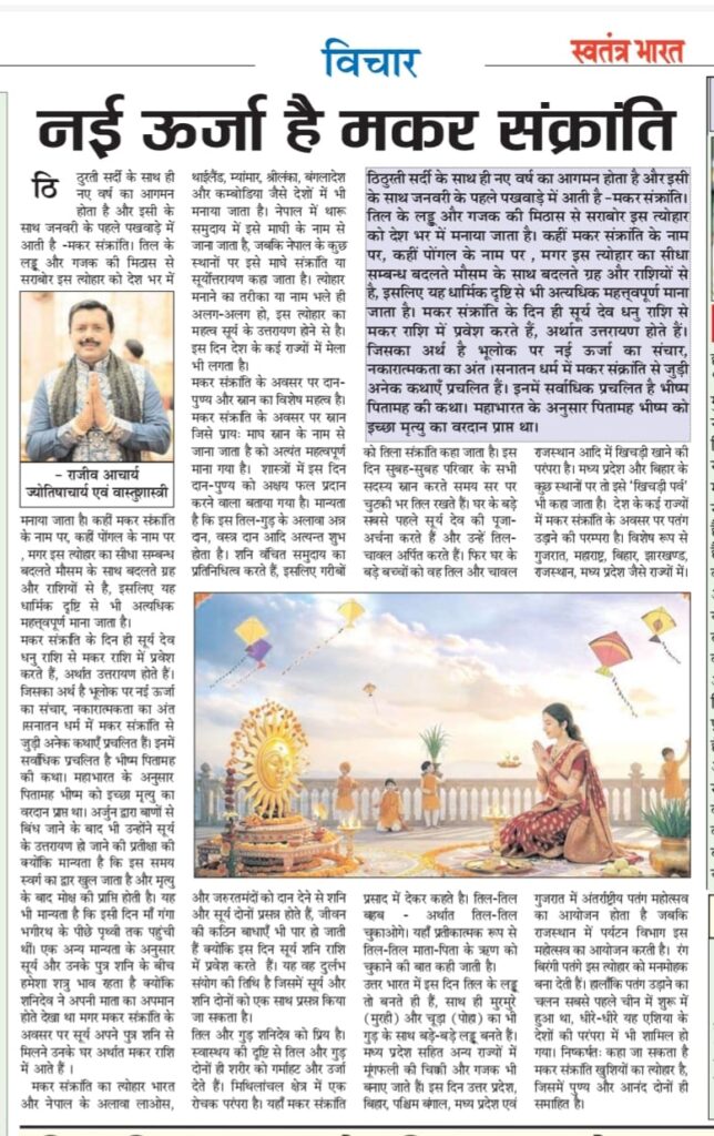 मकर संक्रांति केवल एक पर्व नहीं, बल्कि नई ऊर्जा, नए संकल्प और सकारात्मक परिवर्तन का प्रतीक है।